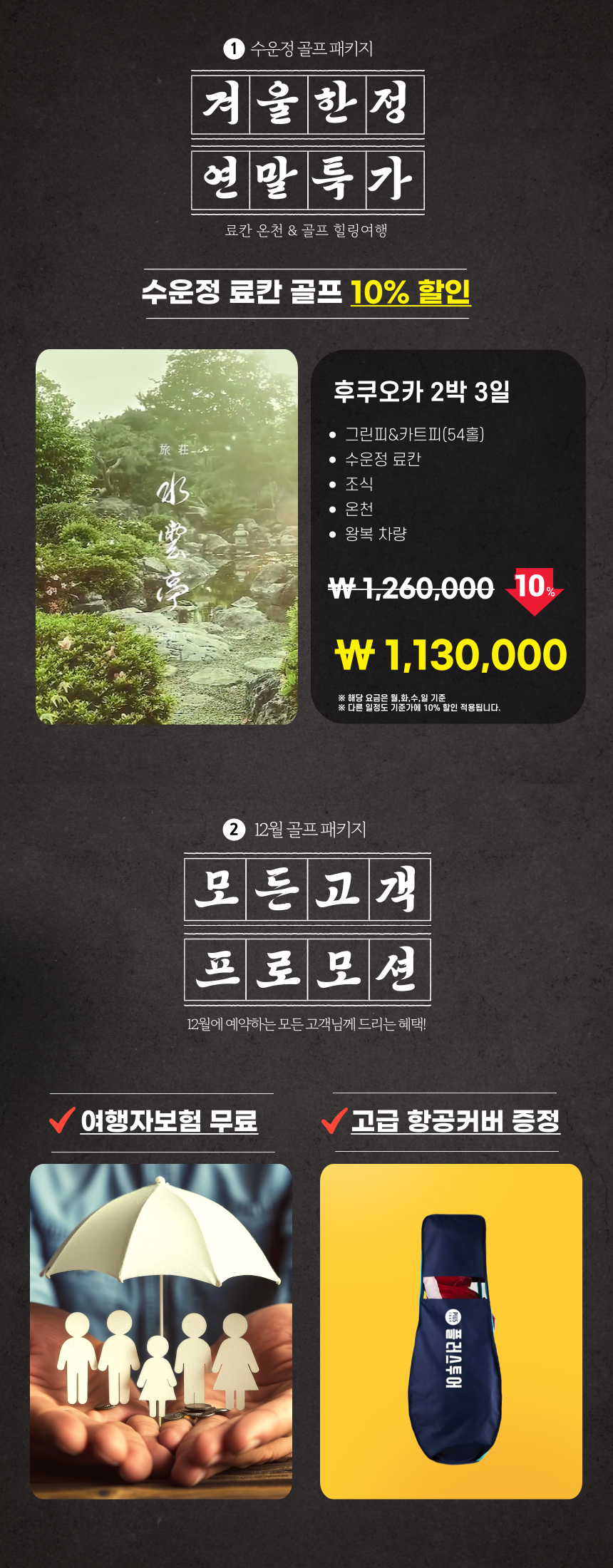 -호텔/골프시설 이용 시(욕실 및 수영장 등) 미끄러지지 않도록 유의해 주시기 바랍니다.